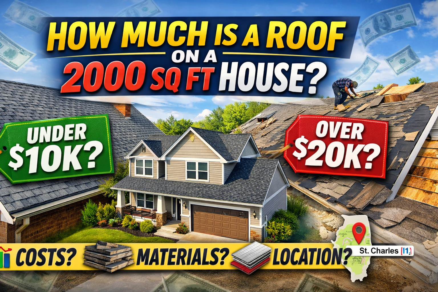 New The Real Cost Question Homeowners Ask First “How much is a roof on a 2,000 square foot house?” is one of the most common home-improvement questions in the United States and for good reason. Roofing is a major investment, and the wide range of prices homeowners see online can feel confusing. One source may suggest a new roof costs under $10,000, while another claims it can exceed $20,000 for a home of the same size. The reality is that both figures can be accurate, depending on the details. Square footage is only a starting point. Materials, labor, roof design, local climate, and contractor experience all influence the final cost. For homeowners in Illinois, especially in and around St. Charles, regional factors matter more than national averages. The guide below explains what a roof on a 2,000 square foot house typically costs using current industry data and practical, real-world considerations. Average Cost to Roof a Two Thousand Square Foot House In the United States, replacing the roof on a 2,000 square foot home generally costs between $7,000 and $25,000, with many homeowners paying around $9,000 to $10,000. This range usually includes labor and standard materials but does not account for extensive structural repairs or premium upgrades. Asphalt shingles, the most commonly installed residential roofing material, typically fall in the middle of this range. A straightforward, single-story roof with a simple layout will usually cost less, while a steep or complex roof with multiple slopes, chimneys, or older decking can cost significantly more. Homeowners in St. Charles often receives the most accurate pricing from experienced local contractors such as Sunrise Exteriors, who understand Illinois weather patterns, labor rates, and building code requirements better than national pricing tools. What Does Two Thousand Square Feet Really Mean for Roofing Costs Many homeowners assume that a 2,000 square foot house requires exactly 2,000 square feet of roofing materials. In practice, roofing costs are based on roof surface area, not interior living space. Because of slope, overhangs, and architectural features, the actual roof area is usually 20 to 50 percent larger than the home’s footprint. For example, a 2,000 square foot home may require roofing materials for 2,400 to 3,000 square feet of coverage. Steeper roof pitches increase both surface area and labor time, while features such as valleys, dormers, skylights, and ridgelines add complexity. This explains why two homes with the same interior square footage can receive very different roofing estimates. US National Roofing Costs for a Two Thousand Square Foot Home National data consistently shows that the that the average cost to replace a roof on a 2,000 square foot home falls around $9,000 to $10,000, with a broader range extending from roughly $7,000 to the low $20,000s depending on materials, roof complexity, and regional labor rates. These figures typically include tear-off of the existing roof, installation of new materials, and standard workmanship warranties. Asphalt shingle roofs for this home size are commonly installed for approximately $8,500 to $14,500. Costs tend to rise in regions with higher labor rates, stricter building codes, or older housing stock. Midwest pricing often remains close to the national average, though individual homes can still vary widely. Key Factors That Can Increase or Decrease Your Roof Cost Several variables have a direct impact on the final price of a roof replacement : Roof pitch: Steeper roofs require additional safety equipment, time, and labor Roof complexity: Multiple slopes, valleys, chimneys, and skylights increase installation time Number of stories: Two-story homes generally cost more to roof than single-story homes Tear-off vs. overlay: Removing old roofing adds labor and disposal costs but improves long-term performance Repairs and upgrades: Decking repairs, ventilation improvements, and code-required updates can raise costs A thorough inspection helps identify these issues before work begins, reducing the risk of unexpected expenses. Labor vs Materials: Where Your Money Actually Goes
